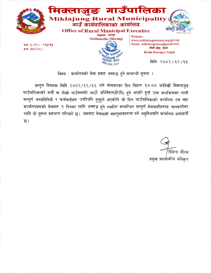 » कार्यालयको सेवा प्रवाह अवरुद्ध सम्बन्धी सूचना।