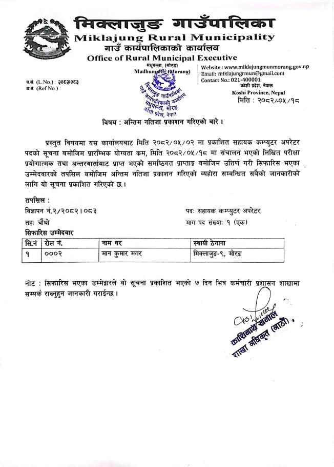 अन्तिम नतिजा प्रकाशन सम्बन्धी सूचना ।