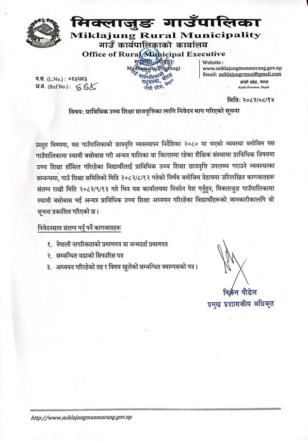 » प्राविधिक उच्च शिक्षा छात्रबृत्तीका लागि निवेदन माग गरिएको सूचना।