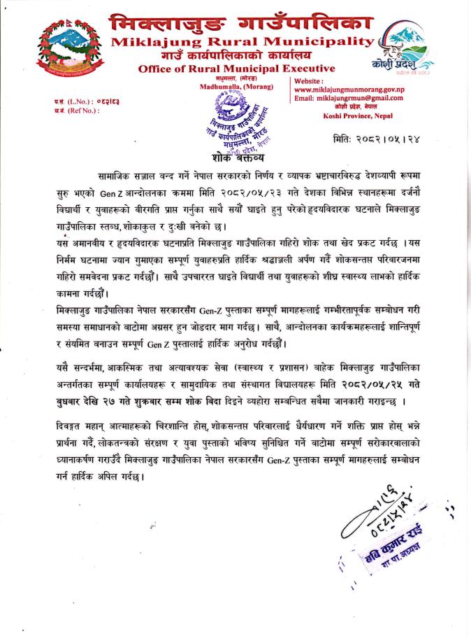 मिति २०८२।०५।२४ गते शोक वक्तव्य।