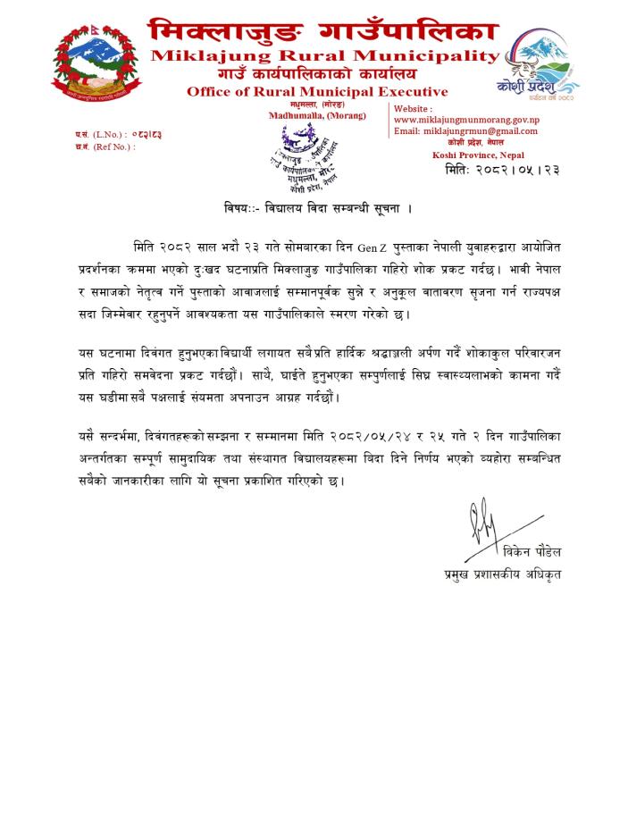 आर्थिक वर्ष २०८२।८३ को मिक्लाजुङ गाउँपालिका मोरङको वार्षिक नीति तथा कार्यक्रम ।